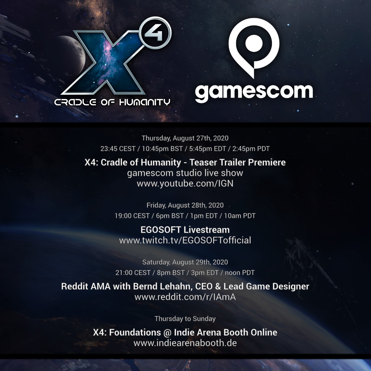 www.twitch.tv/egosoftofficial para saber más sobre nuestros planes a futuro en X4: Foundations y X4: Cuna de la Humanidad.