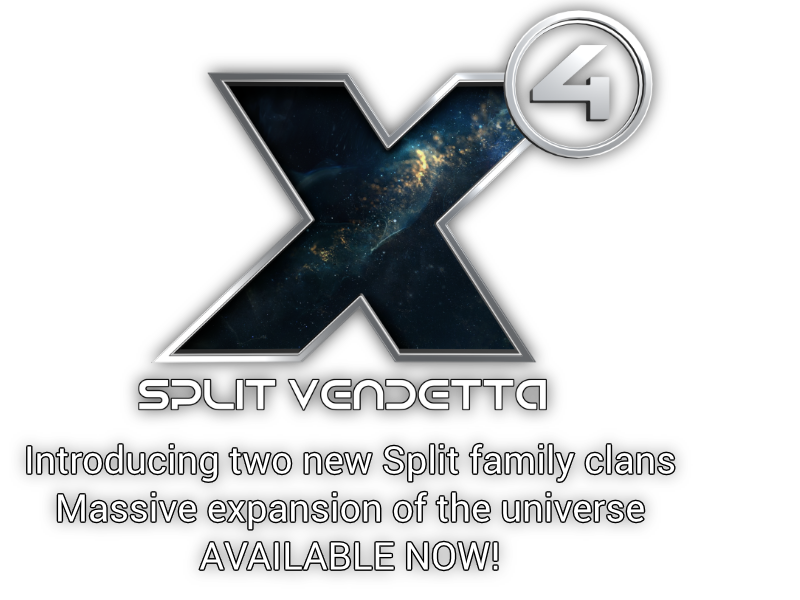 X4: Split Vendetta ist die erste große Erweiterung für X4: Foundations und ebenfalls ab sofort erhältlich. Diese Erweiterung vergrößert den Umfang des Universums enorm und führt zwei neue Split-Familienclans ein, zusammen mit deren Wirtschaft, neuen Schiffen, Waffen und Stationsmodulen.